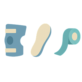 Use supportive equipment If needed. Braces, orthotics, or kinesiology tape should be kept on as advised.